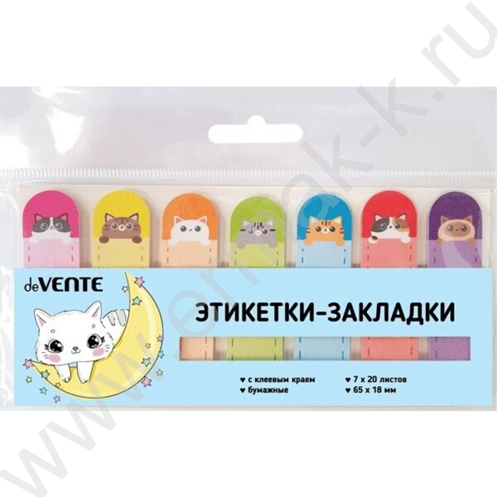 Набор самокл. этикеток-закладок Kitty 65*18мм 7*20 листов, 7 дизайнов