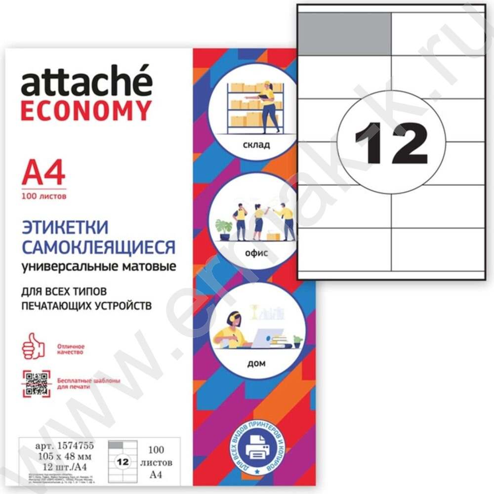 Этикетки самокл А4 105*48мм /100л*12шт