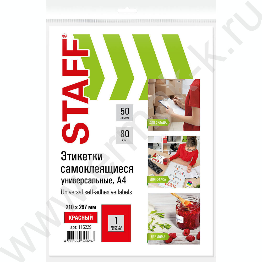 Этикетки самокл А4 210*297мм / 50л красные 80г