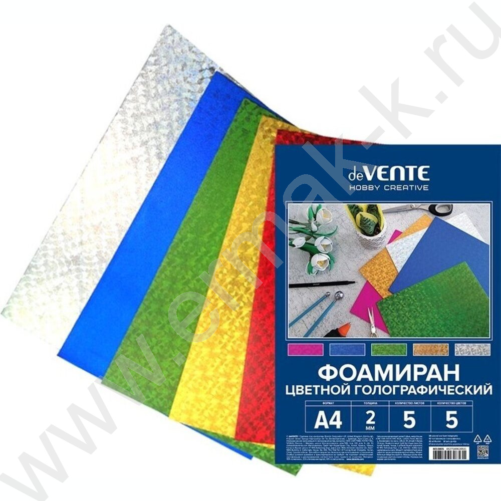 Фоамиран цветной голографический А4 5л/5цв 2мм пл.пакет с европодвесом