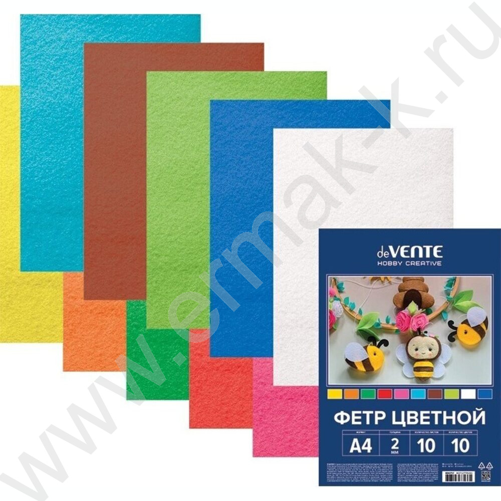Фетр А4 Яркие цвета 2мм 10цв/10л /мягкий /пл.пакет с европодвесом