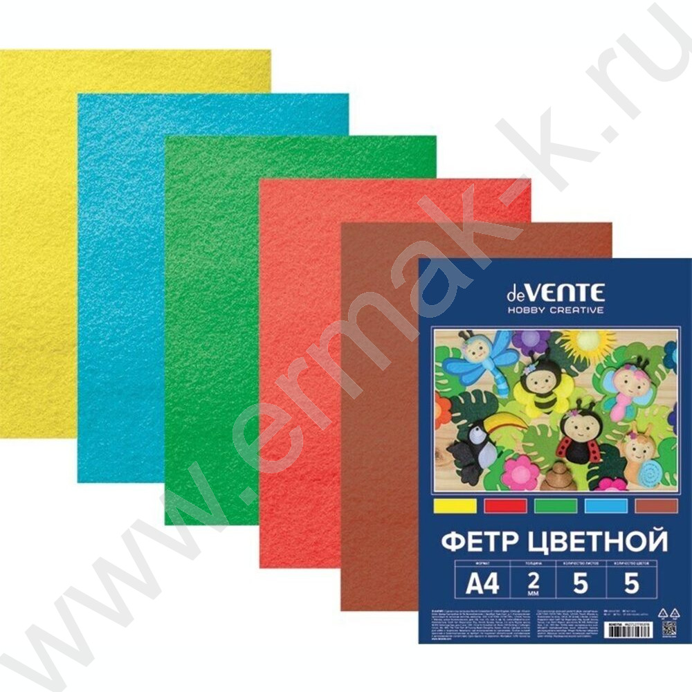 Фетр А4 Яркие цвета 2мм 5цв/5л /мягкий /пл.пакет с европодвесом
