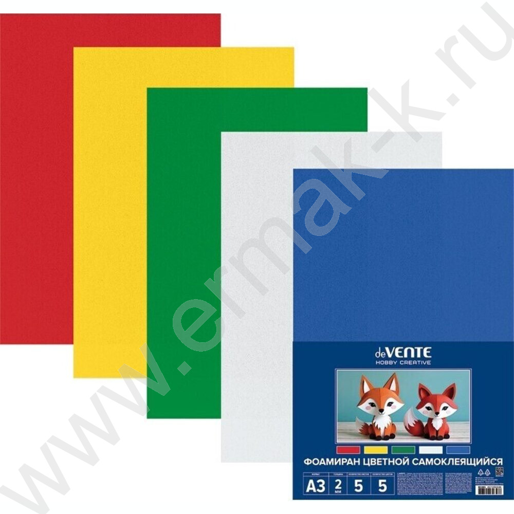 Фоамиран цветной самоклеящийся А3 5л/5цв 2мм пл.пакет с европодвесом
