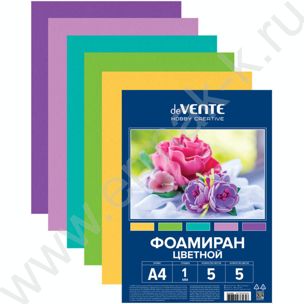 Фоамиран цветной А4 5л/5цв 1мм пл.пакет с европодвесом, пастельные цвета