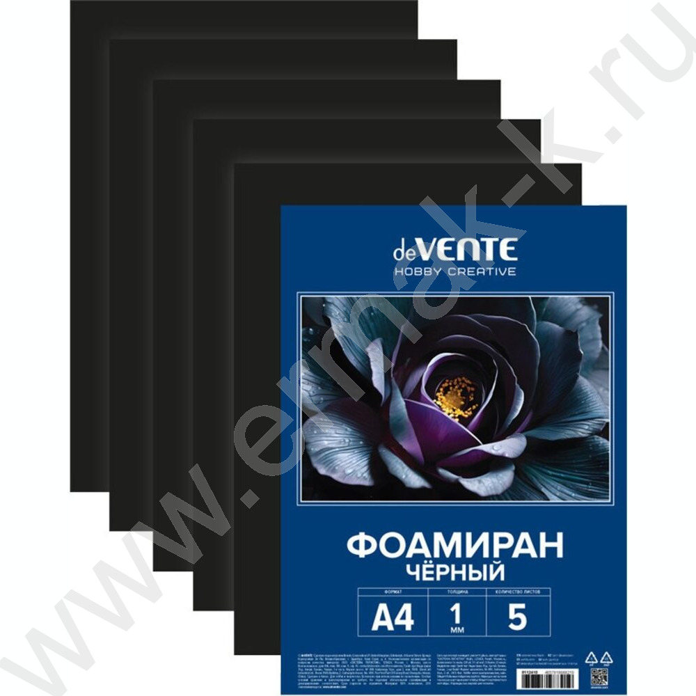 Фоамиран черный А4 5л/1мм "HOBBY CREATIVE" /пл.пакет с европодвесом