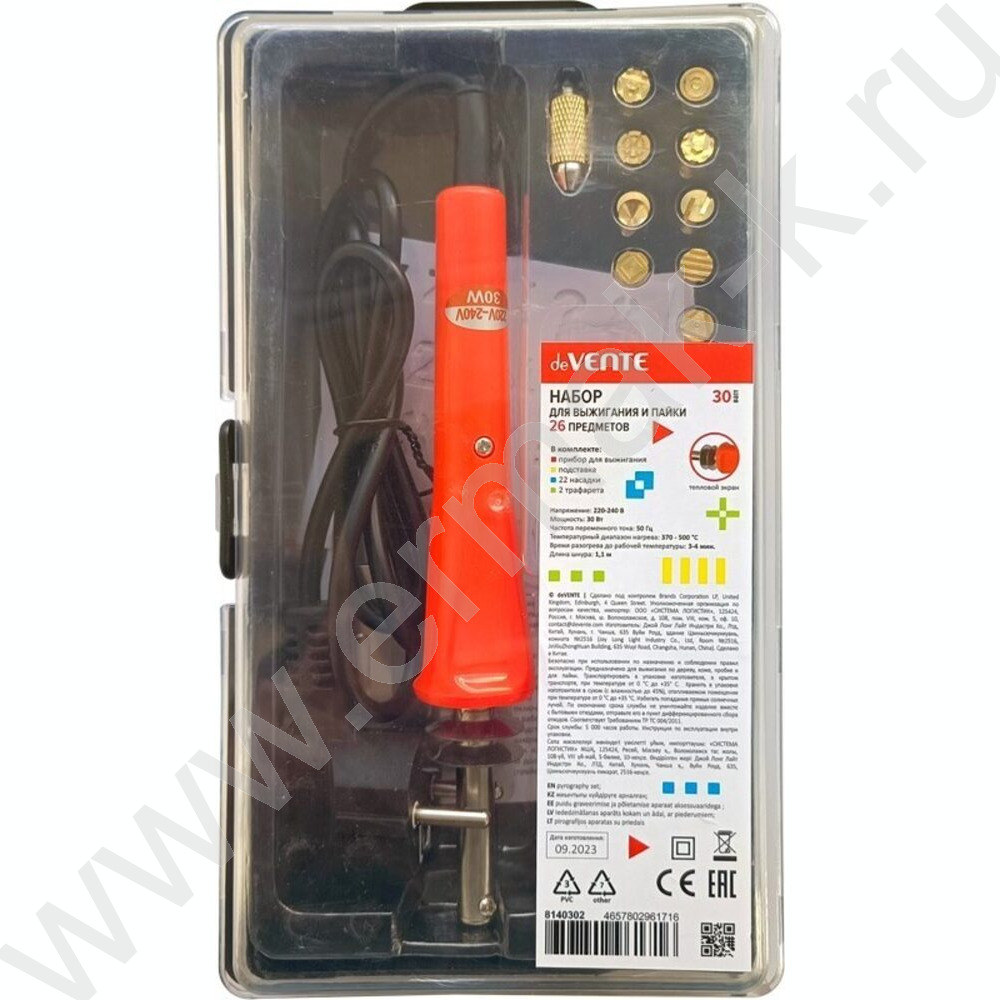 Электроприбор для выжигания по дереву "Pyrograph" /мощность 30Вт, 26 предметов для работы