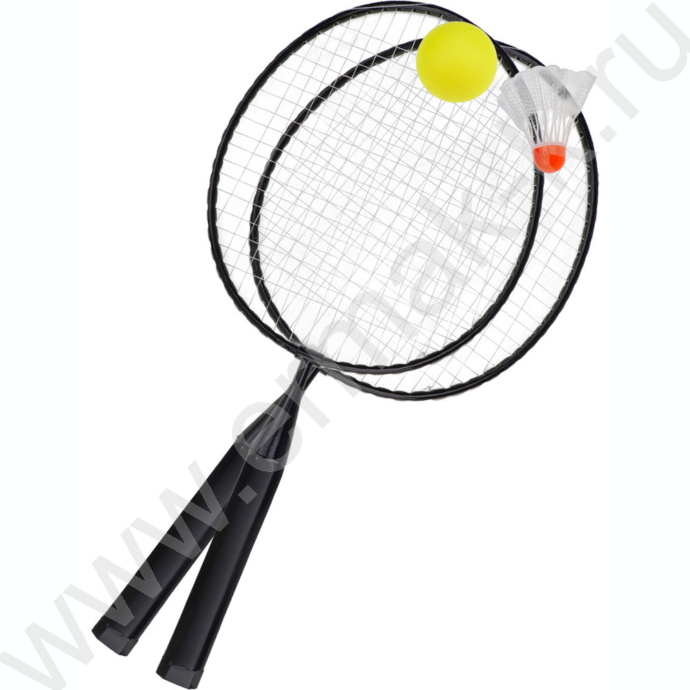 Набор для бадминтона 2 ракетки металл короткая ручка 1 волан 1 шарик