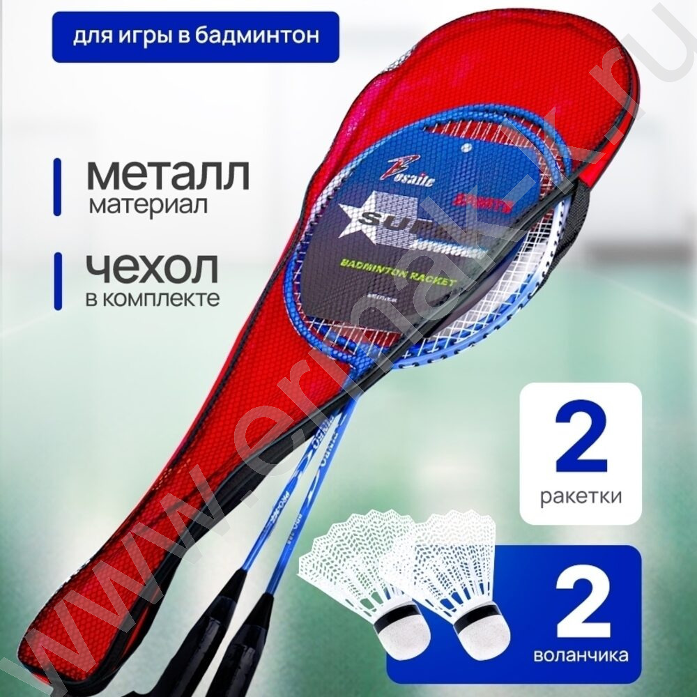 Набор для бадминтона 2 ракетки металл 2 волана в чехле NEW