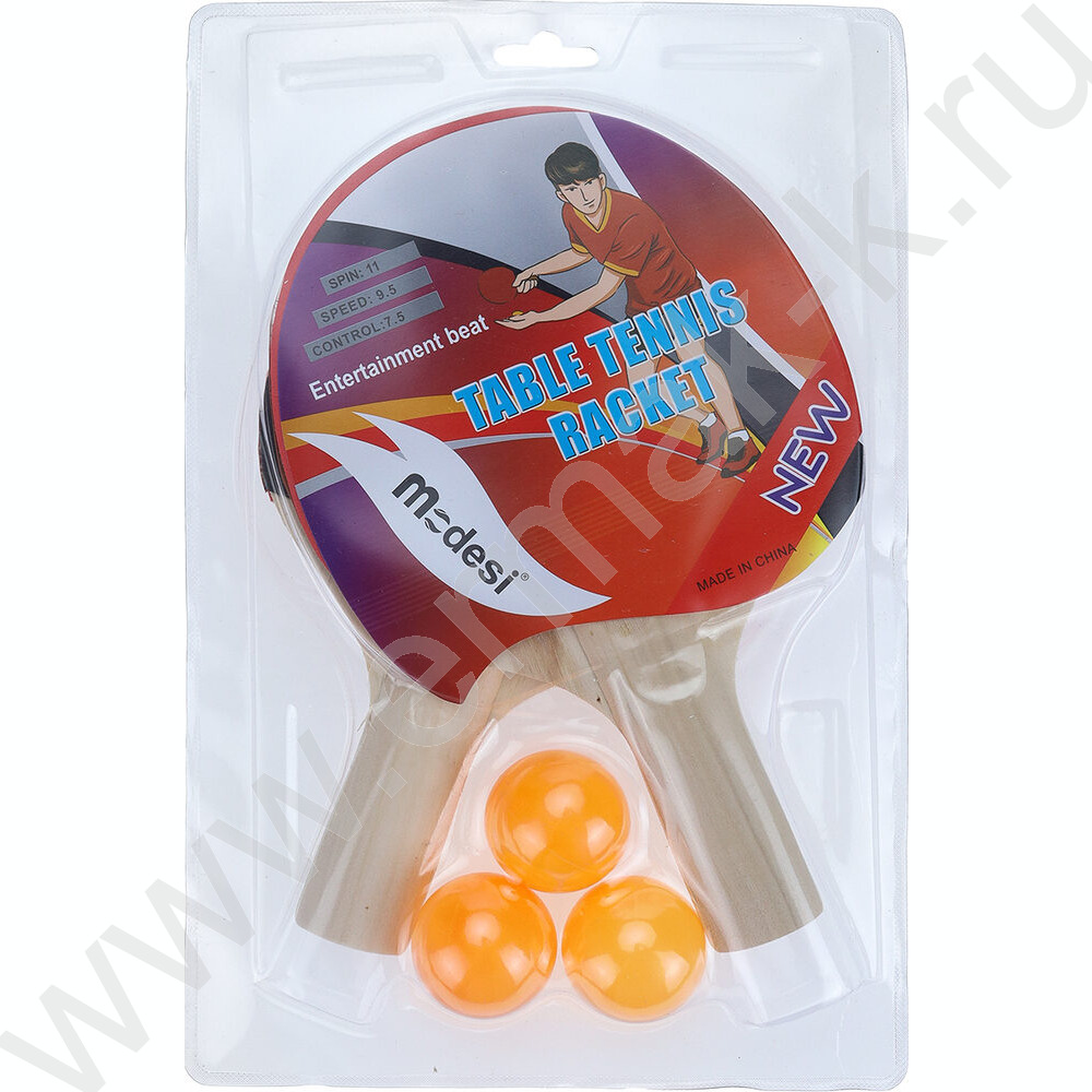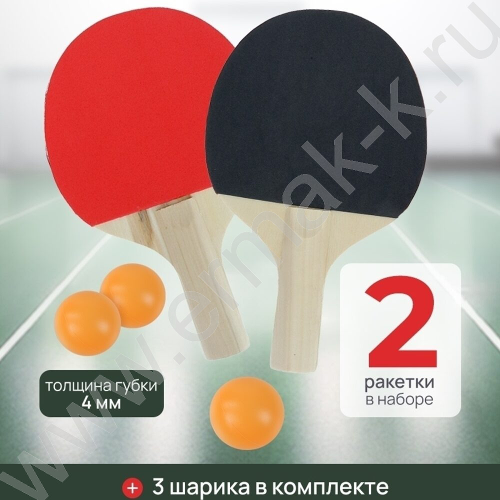 Набор для игры в настольный теннис 2 ракетки 3 шарика толщина 4мм блистер