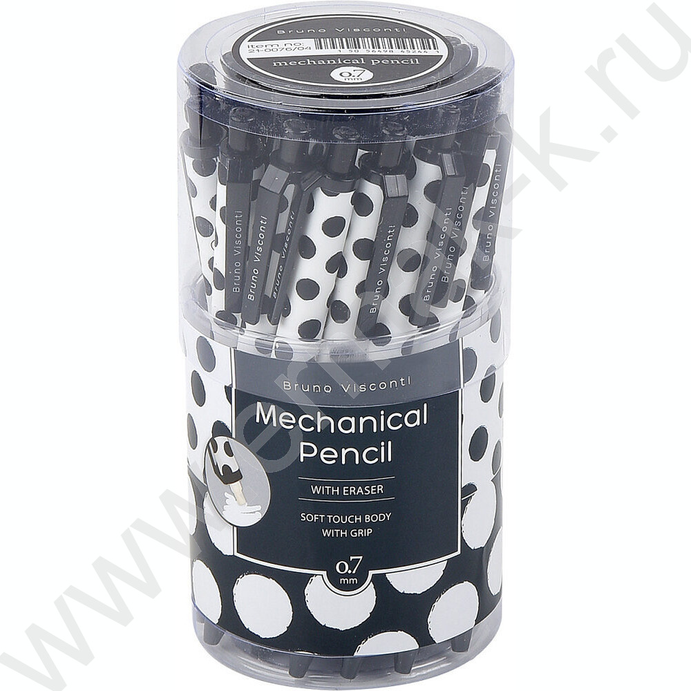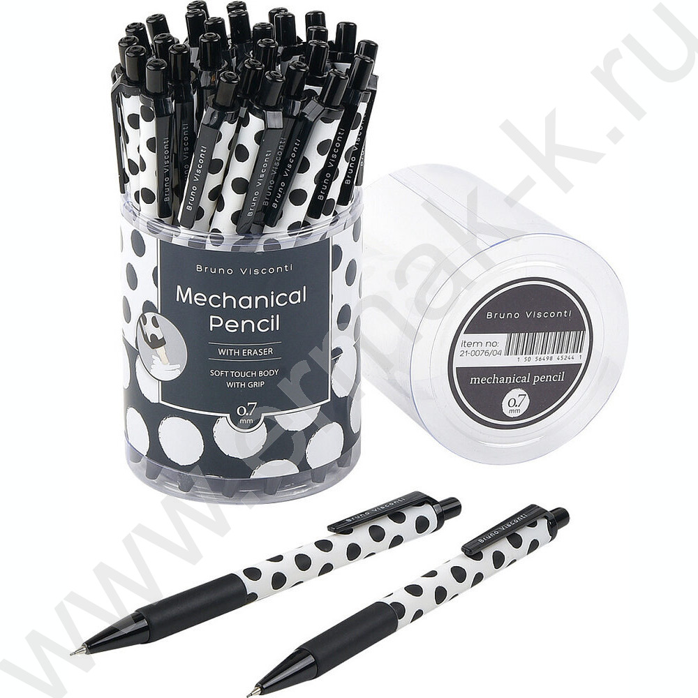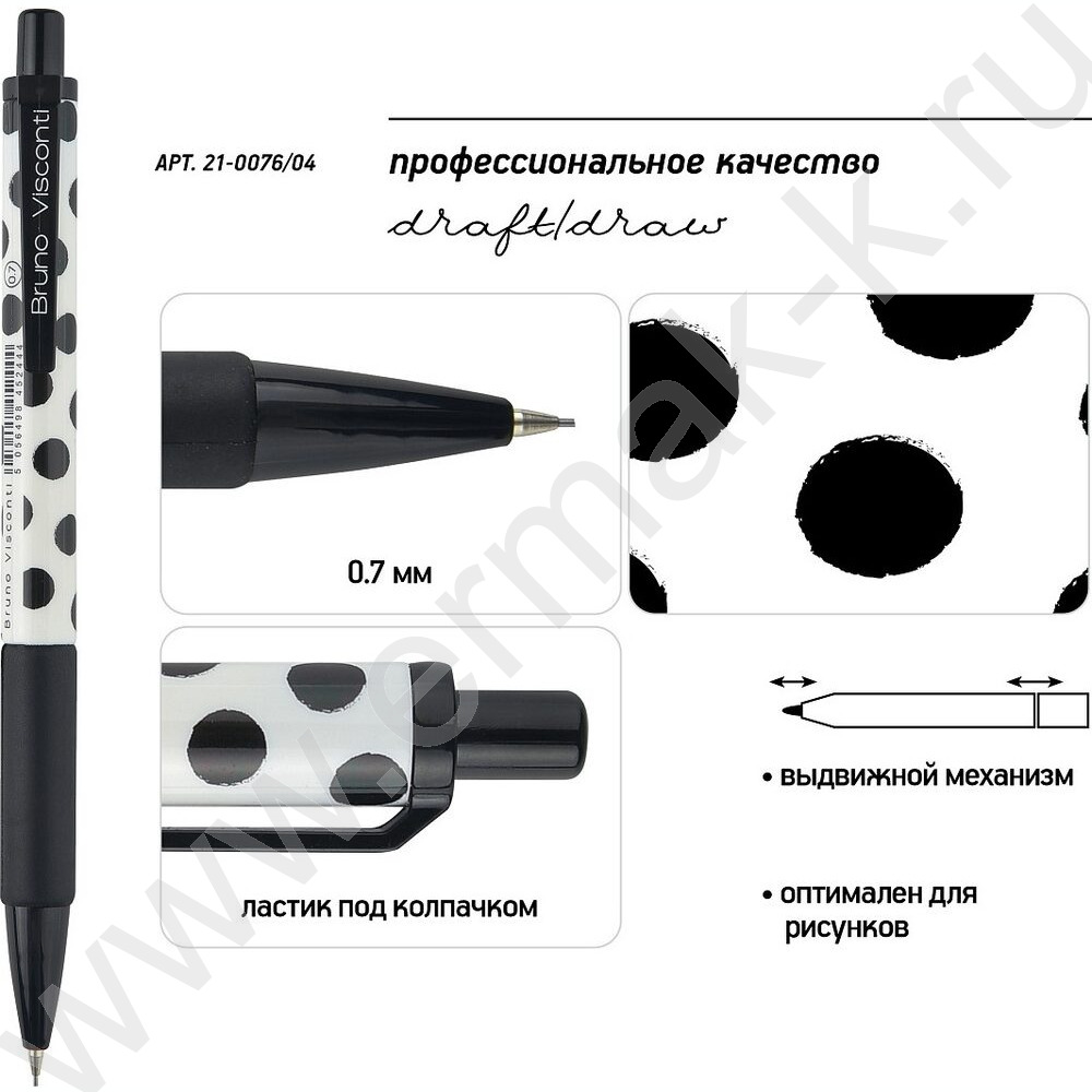 Карандаш механический 0,7мм с ластиком Black&White.Polka Dots