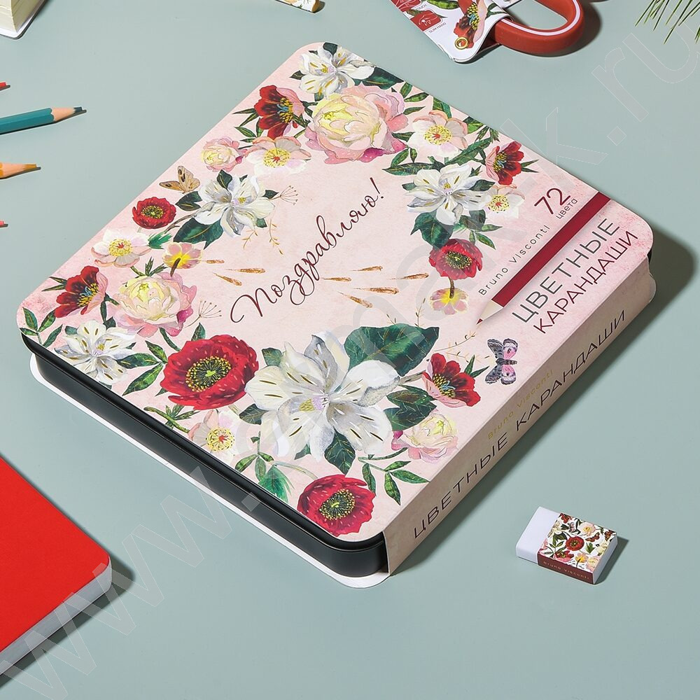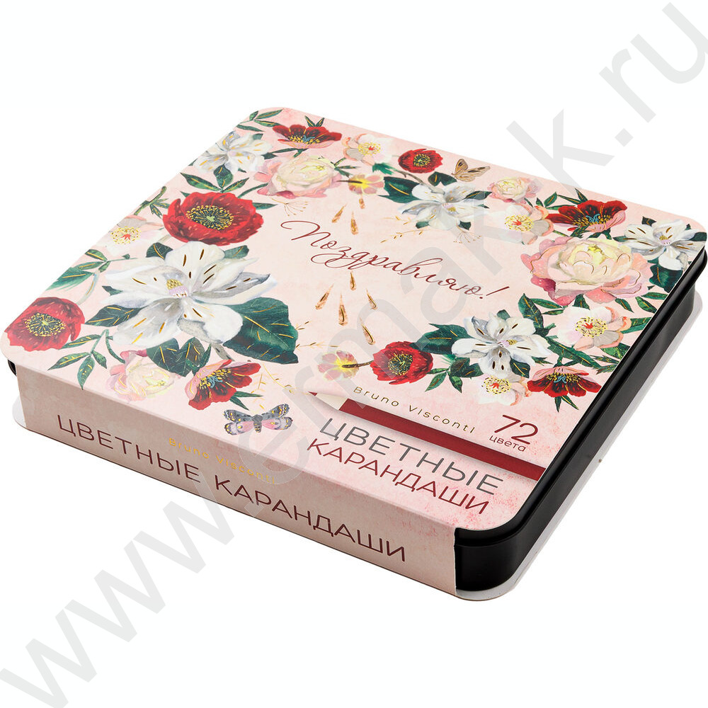 Карандаши пластиковые 72цв Flora.Пионы.Поздравляю /метал.коробка NEW