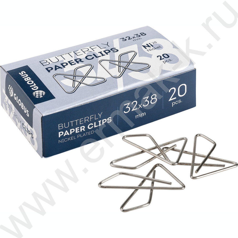 Скрепки 32мм / 20шт Бабочки никелированные