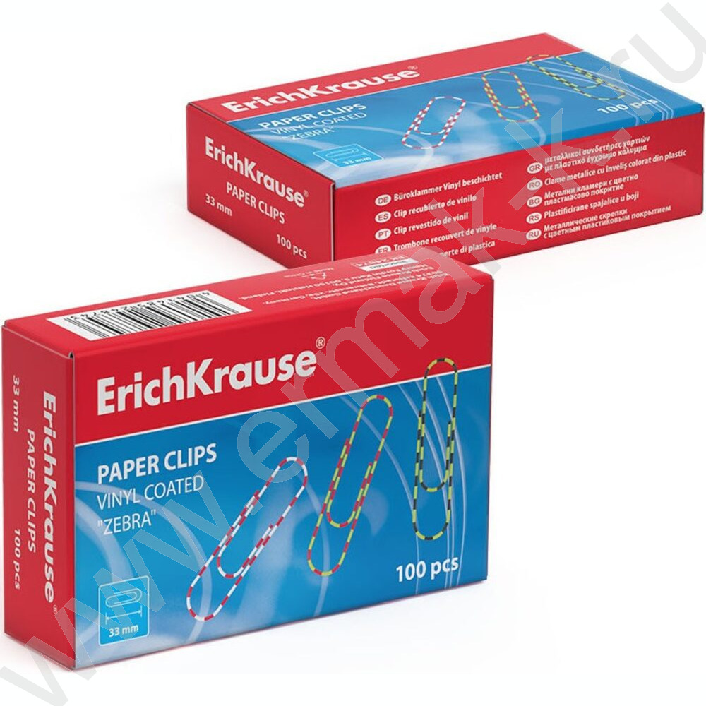 Скрепки 33мм /100шт Зебра ассорти