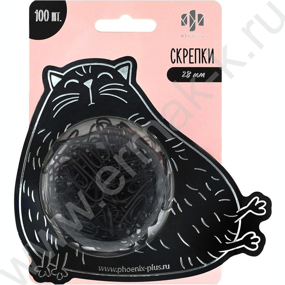 Скрепки 28мм /100шт черные "Чёрный котик"