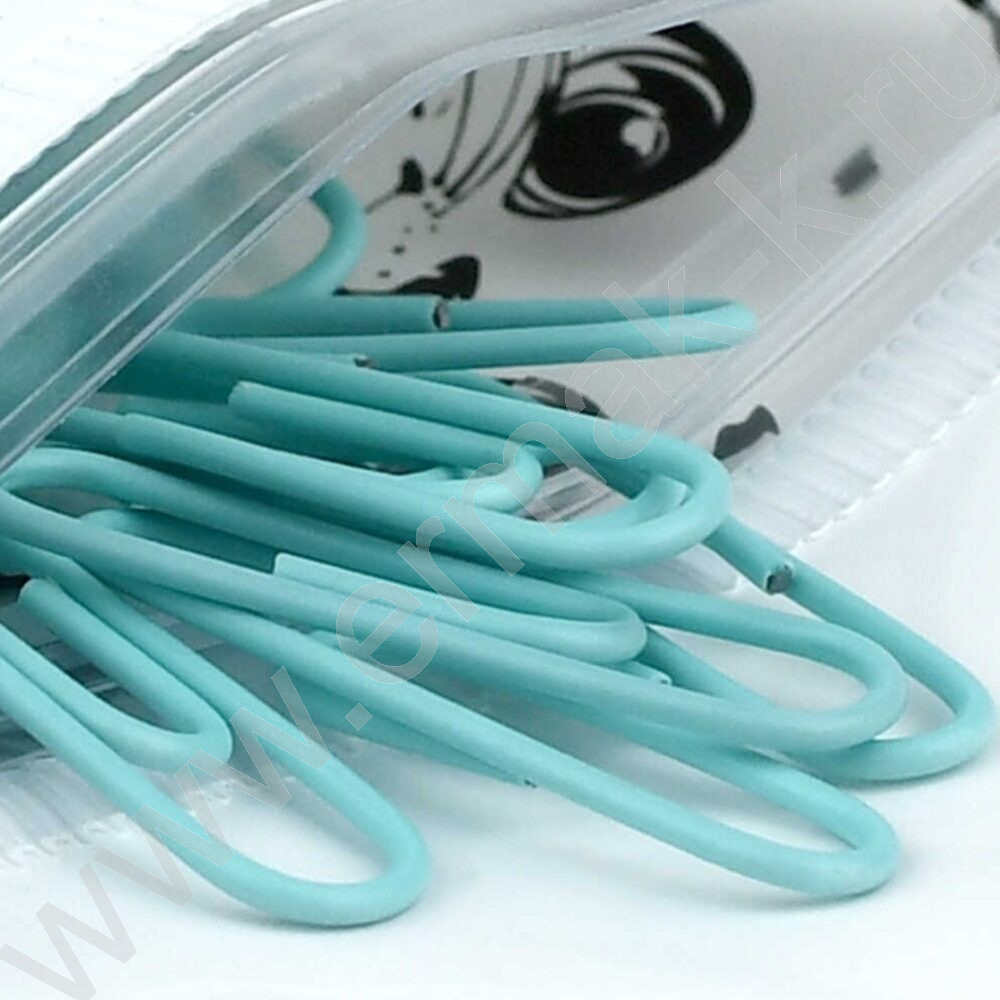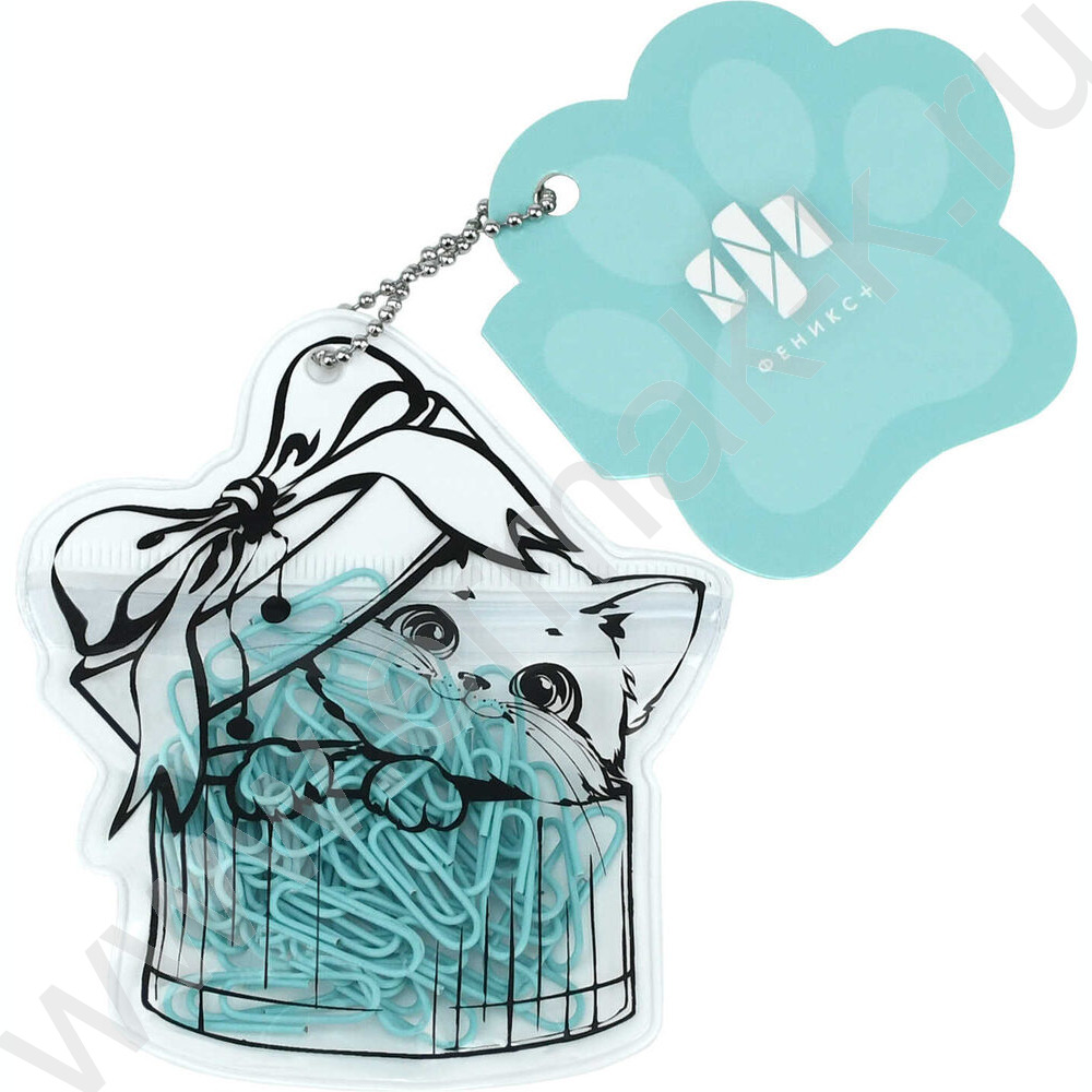 Скрепки 28мм / 40шт мятные "Котёнок в коробке" /ПВХ-пакет с многоразовой струнной застёжкой (зип