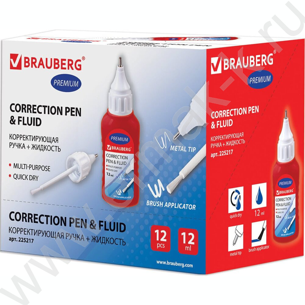 Ручка-корректор + корректирующая жидкость 12мл., 2 в 1: метал наконечник + кисточка