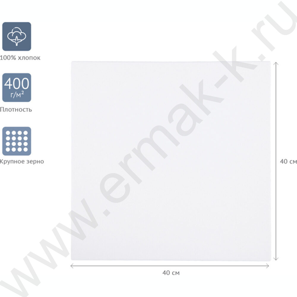 Холст на подрамнике 40*40см "Студия", 100% хлопок, 400г/м2, крупное зерно