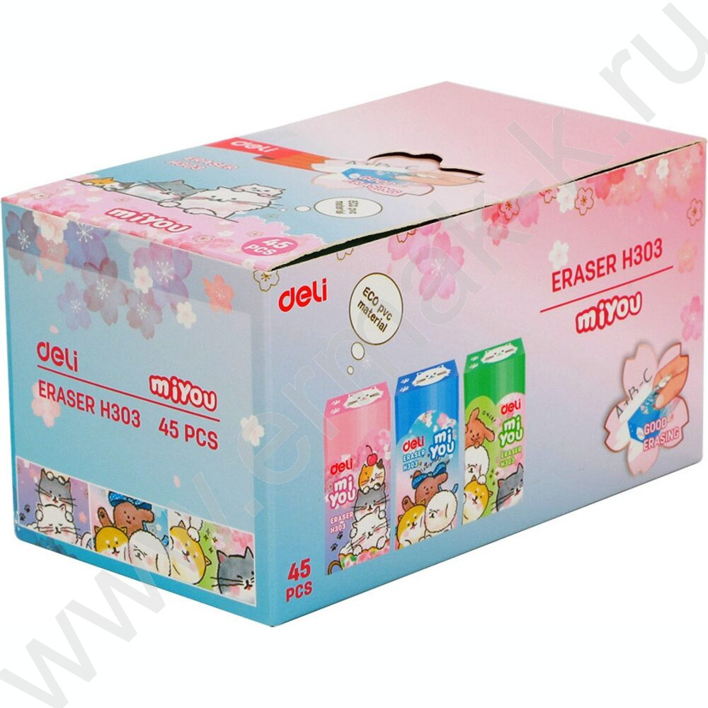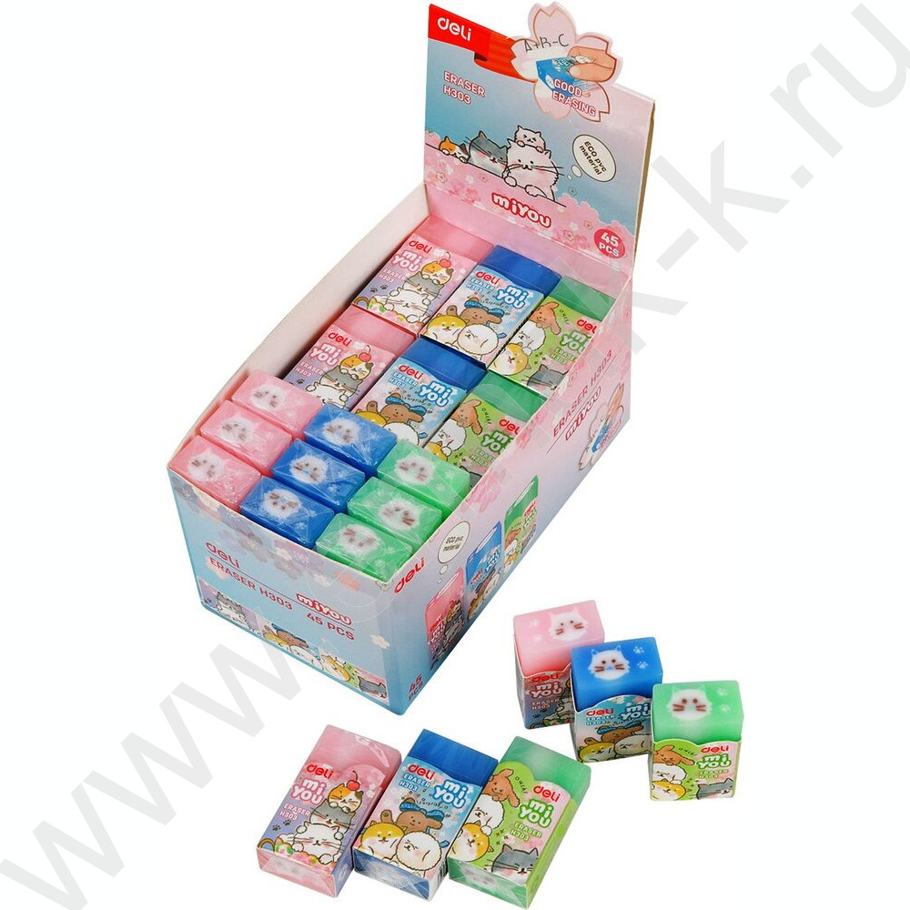 Ластик цветной "MiYou" 40*22*12мм, ассорти, индивид. картон.упаковка
