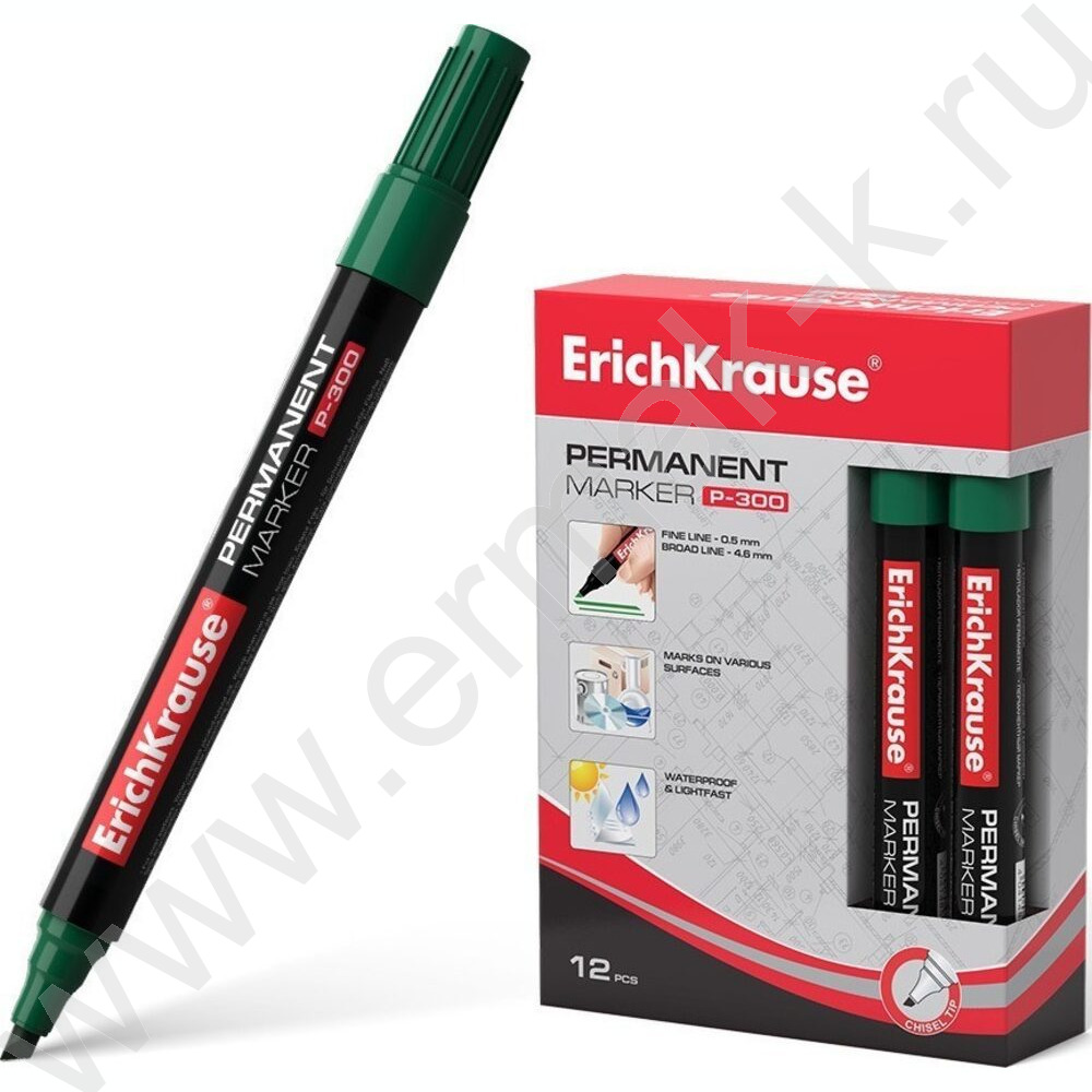 Маркер перм. /зеленый/ 4мм косой P-300