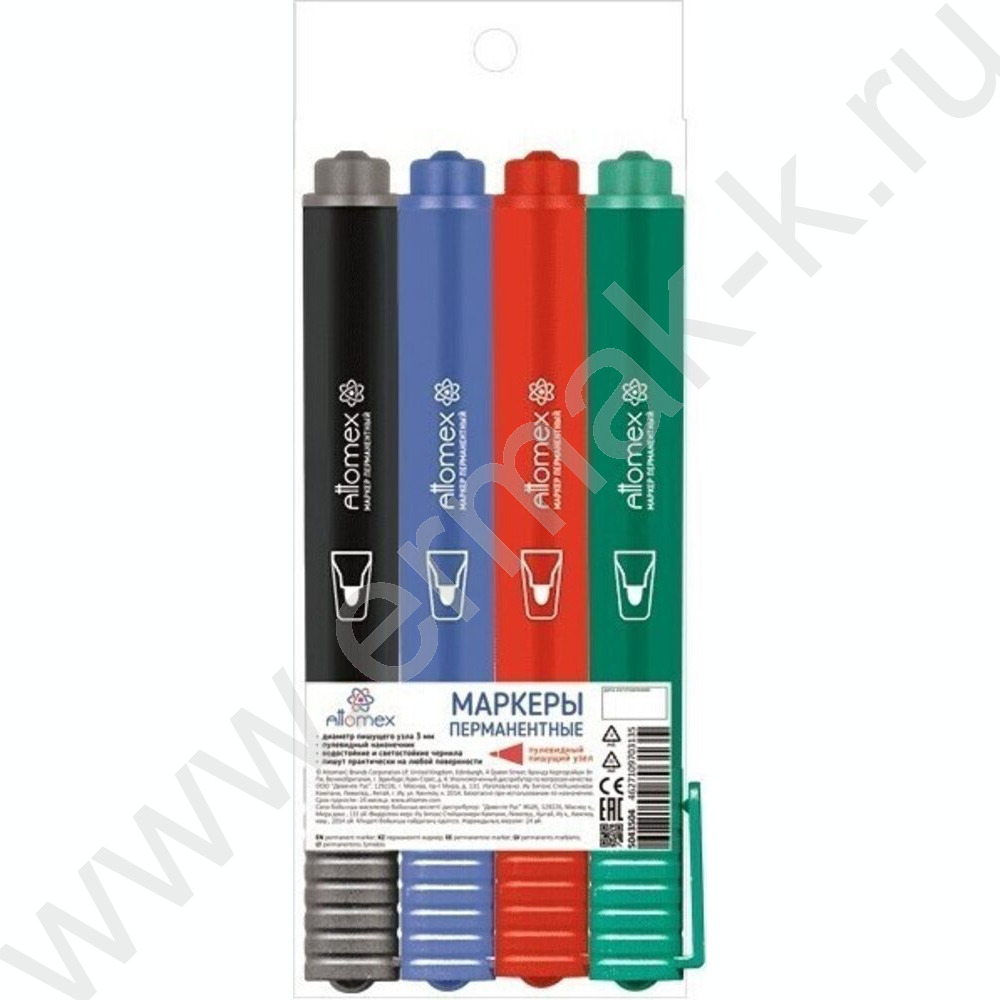 Маркер перм. /набор 4цв/ 3мм круг европодвес