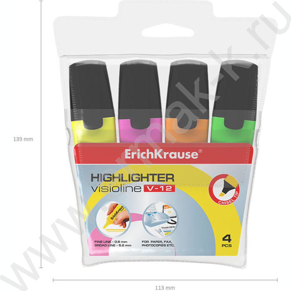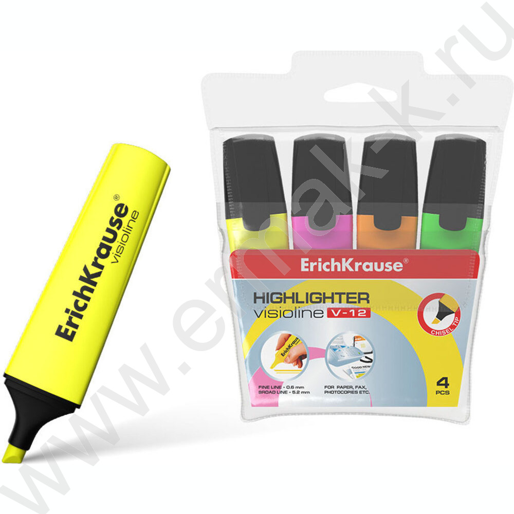 Текстовыделитель /набор 4цв/ 5,2мм косой Visioline V-12 Neon