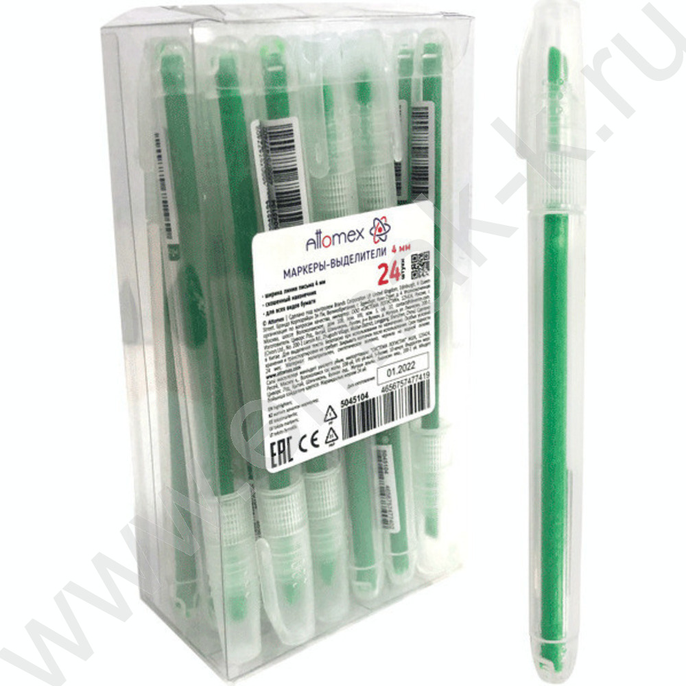 Текстовыделитель /зеленый/ 1-4мм косой, с клипом