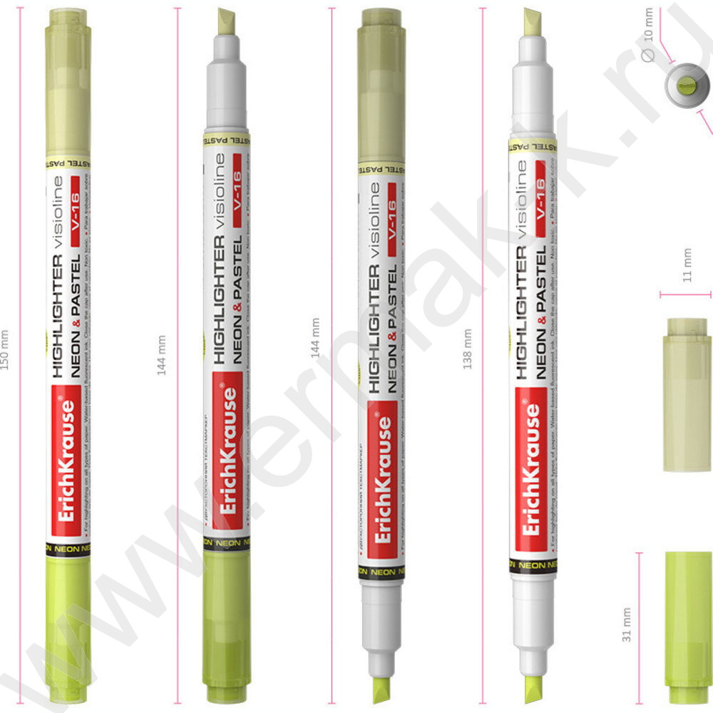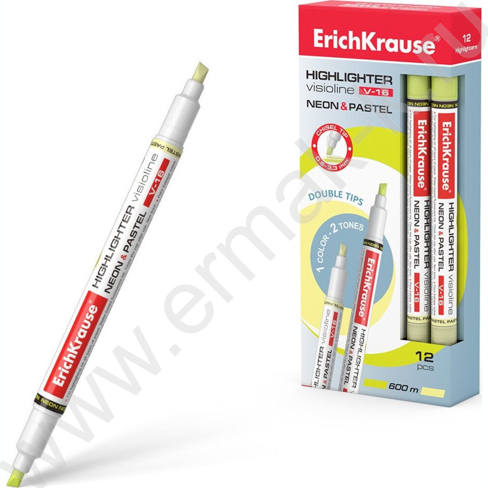 Текстовыделитель двустор. /желтый/ 3,3мм косой Neon+Pastel "Visioline V-16"