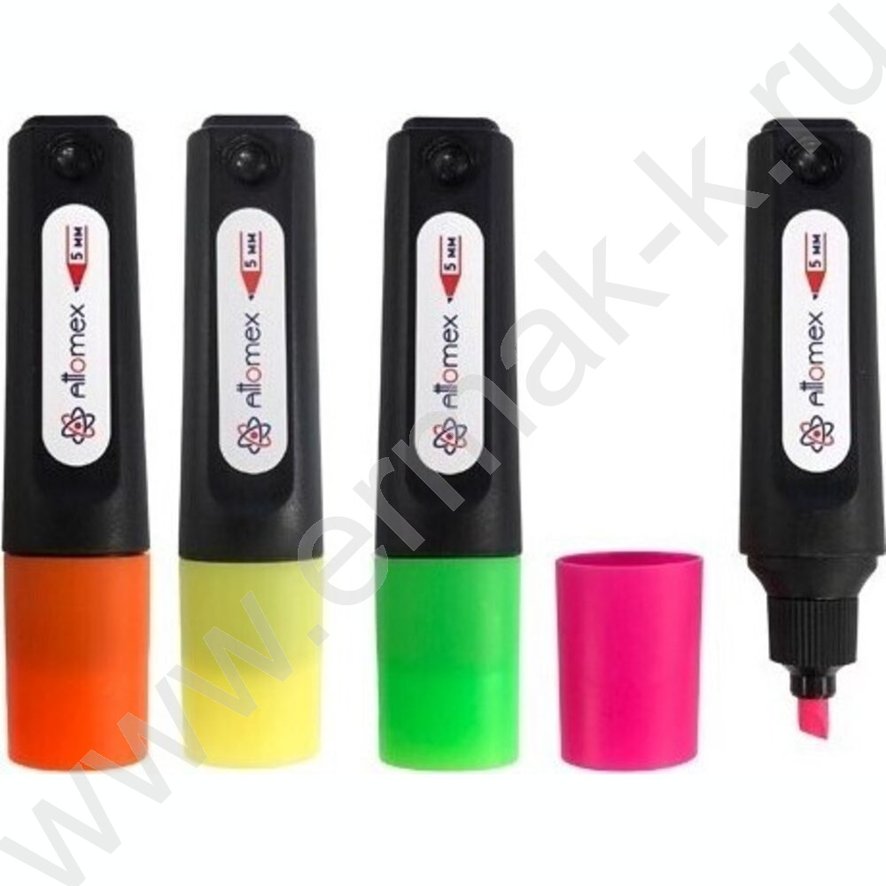 Текстовыделитель /набор 4цв - желт, зел, оранж, роз /1-5мм косой /блистер