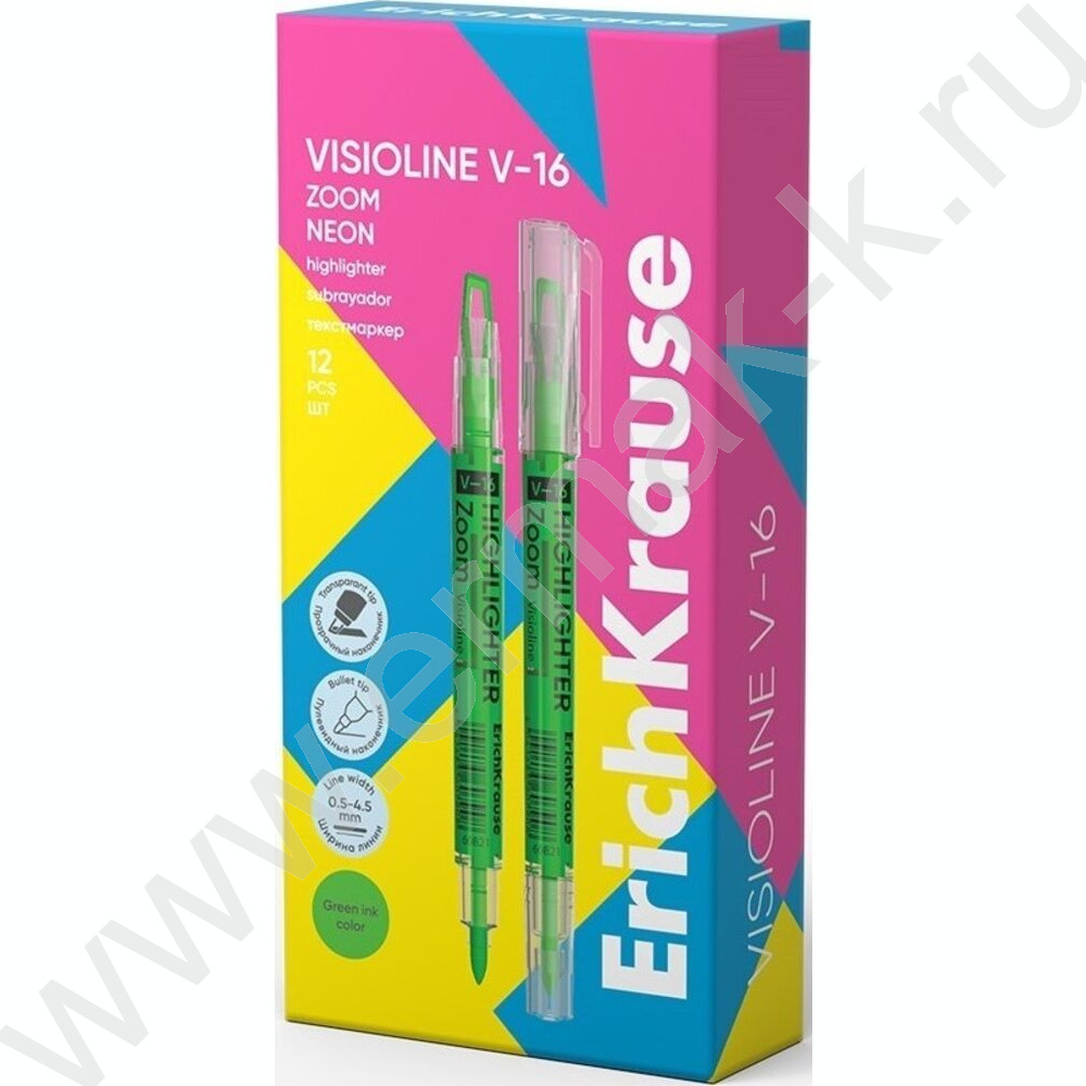Текстовыделитель двустор. /зеленый/ пуля-0,5мм, косой-4,5мм Visioline V-16 Zoom Neon