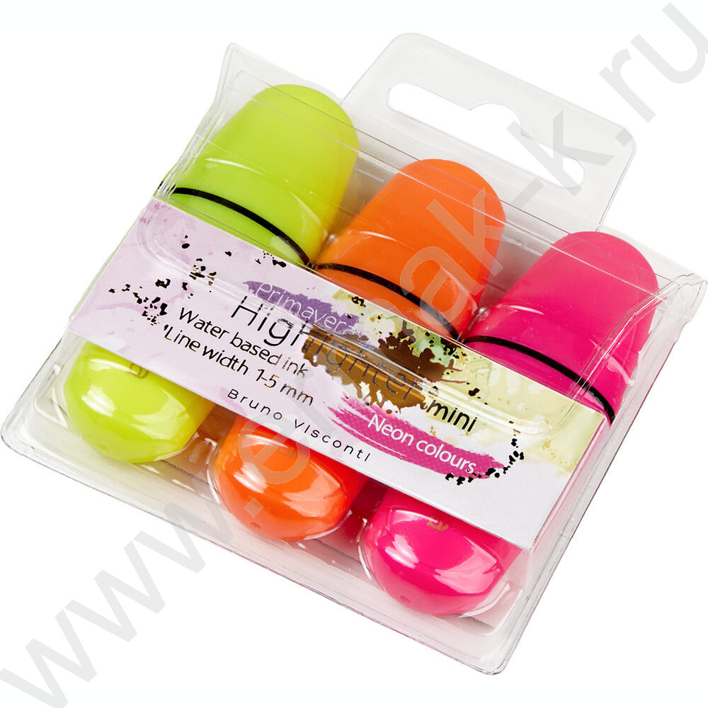Текстовыделитель /набор 3цв/ 1-5мм косой Primavera Mini /желтый, розовый, оранжевый NEW