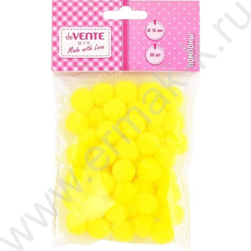 Помпоны d-15мм 50шт, цвет желтый, европодвес