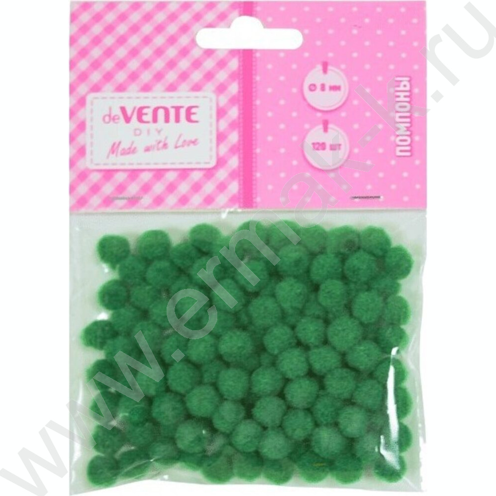 Помпоны d-8мм 120шт, цвет зеленый, европодвес