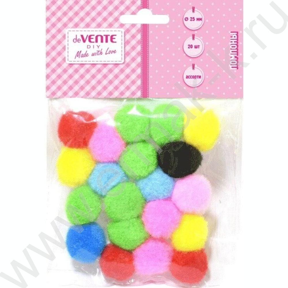 Помпоны d-25мм 20шт, цвет ассорти, европодвес