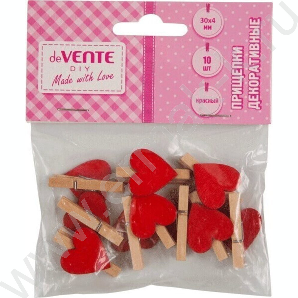 Прищепки декоративные "Hearts" 3*0,4см 10шт, дерево /красные /блистер