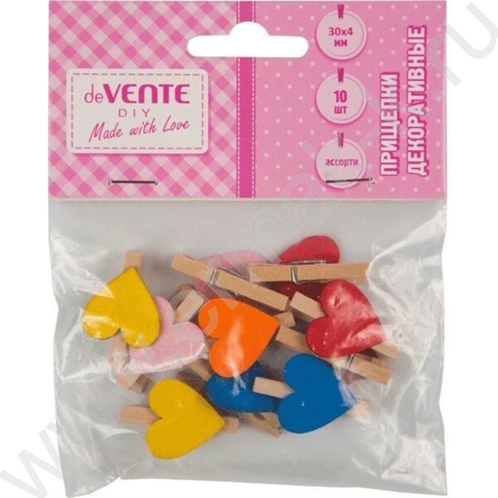 Прищепки декоративные "Hearts" 3*0,4см 10шт, дерево /ассорти цветов /блистер