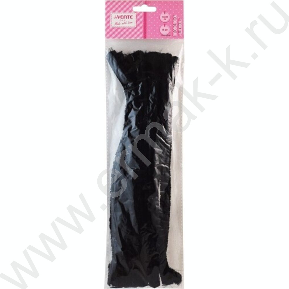 Проволока пушистая 30см/15мм 10шт Шенил /цвет черный /блистер