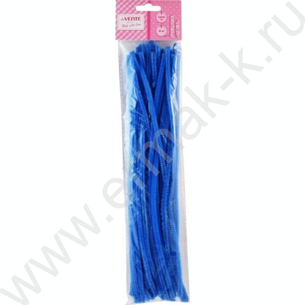 Проволока пушистая 30см/6мм 30шт Шенил /цвет голубой /блистер