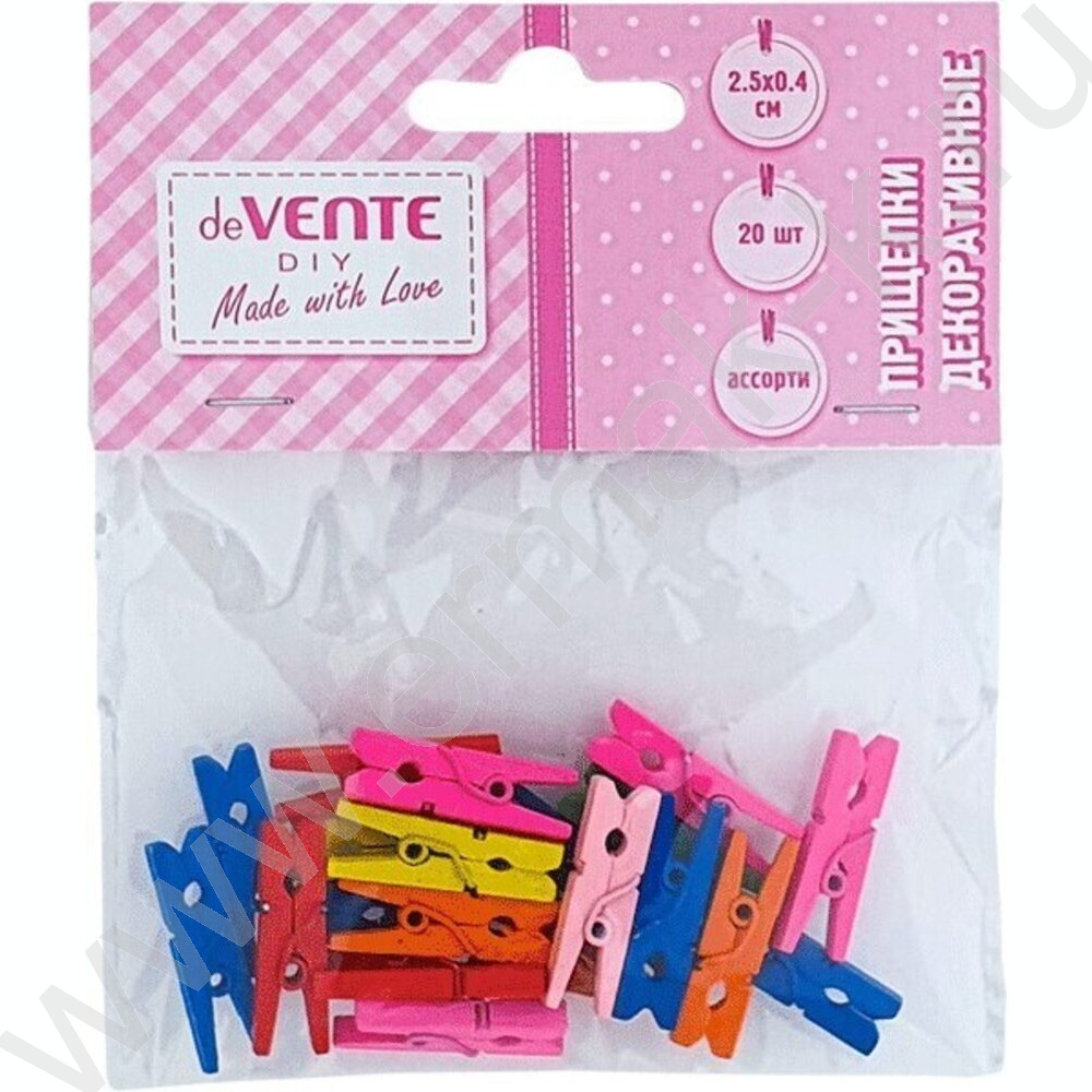 Прищепки декоративные "Цветной микс" 2,5*0,4см 20шт цвета ассорти, дерево /блистер