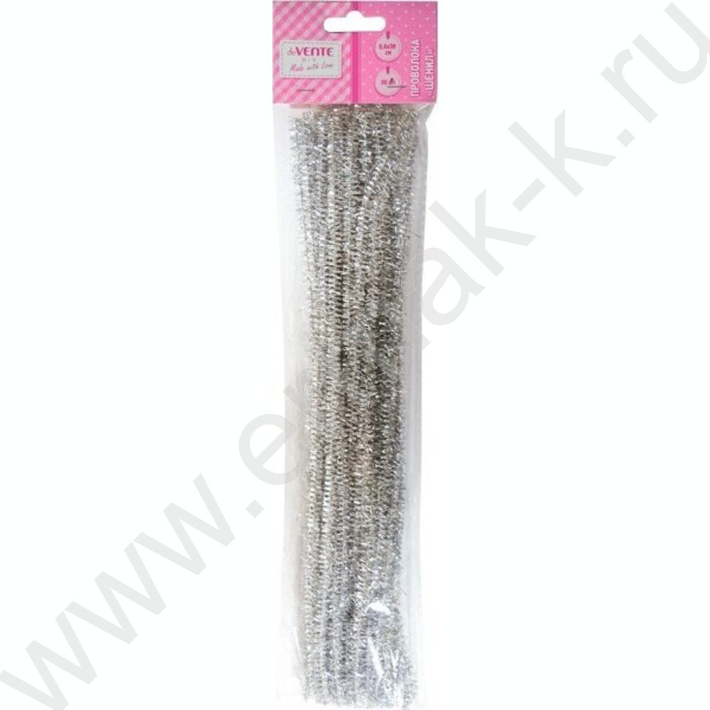 Проволока пушистая 30см/6мм 30шт Шенил "Блестящая" /цвет серебряный /блистер