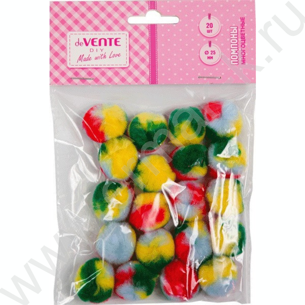 Помпоны d-25мм 20шт, градиент из 4 цветов, европодвес
