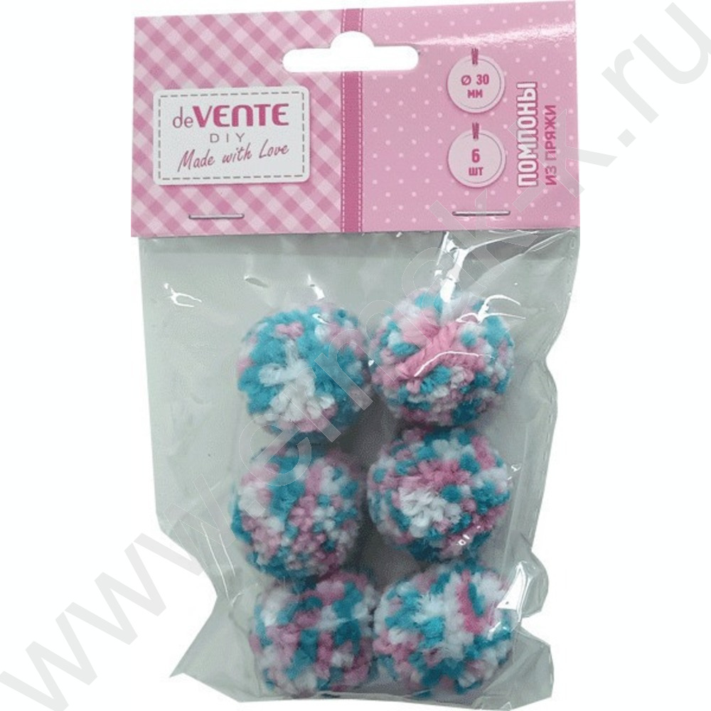 Помпоны d-30мм 6шт, сиренево-голубые, европодвес