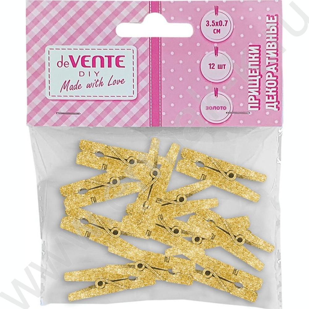Прищепки декоративные "Golden" 3,5*0,7см 12шт, дерево /золотистые металлик /блистер