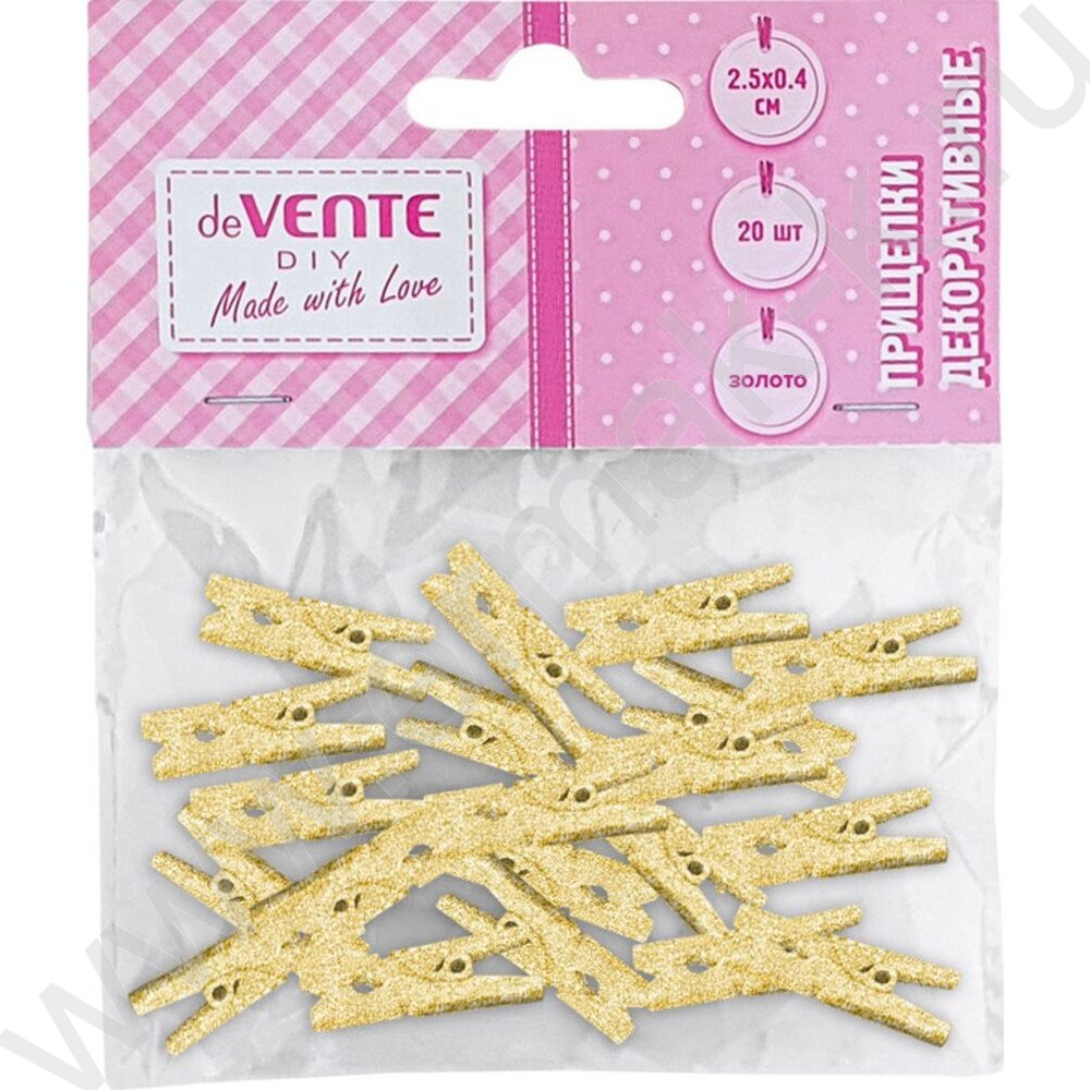 Прищепки декоративные "Golden" 2,5*0,4см 20шт, дерево /золотистые металлик /блистер