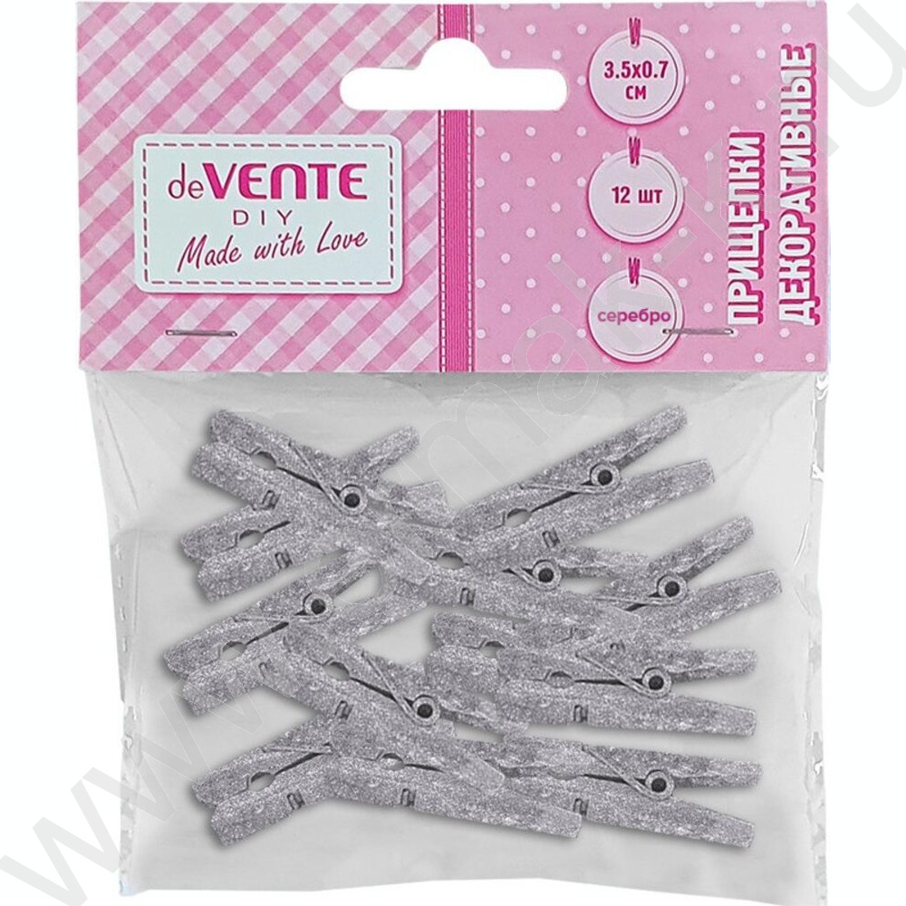 Прищепки декоративные "Silver" 3,5*0,7см 12шт, дерево /серебристые металлик /блистер