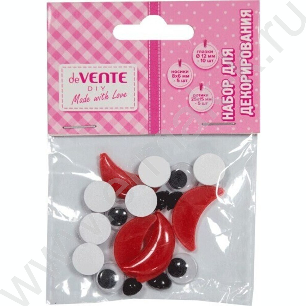 Набор для декорирования "Глазки. Носики. Ротики" 20шт глазки 12мм, носики 8*6мм, ротики 25*15мм