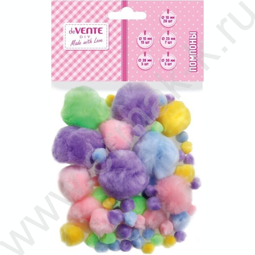 Помпоны "DIY" 60шт ассорти размеров, пастельные цвета ассорти, европодвес