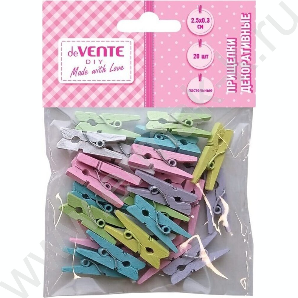 Прищепки декоративные "DIY Natural Wood" 2,5*0,3см 20шт пастельные цвета ассорти, дерево /блист
