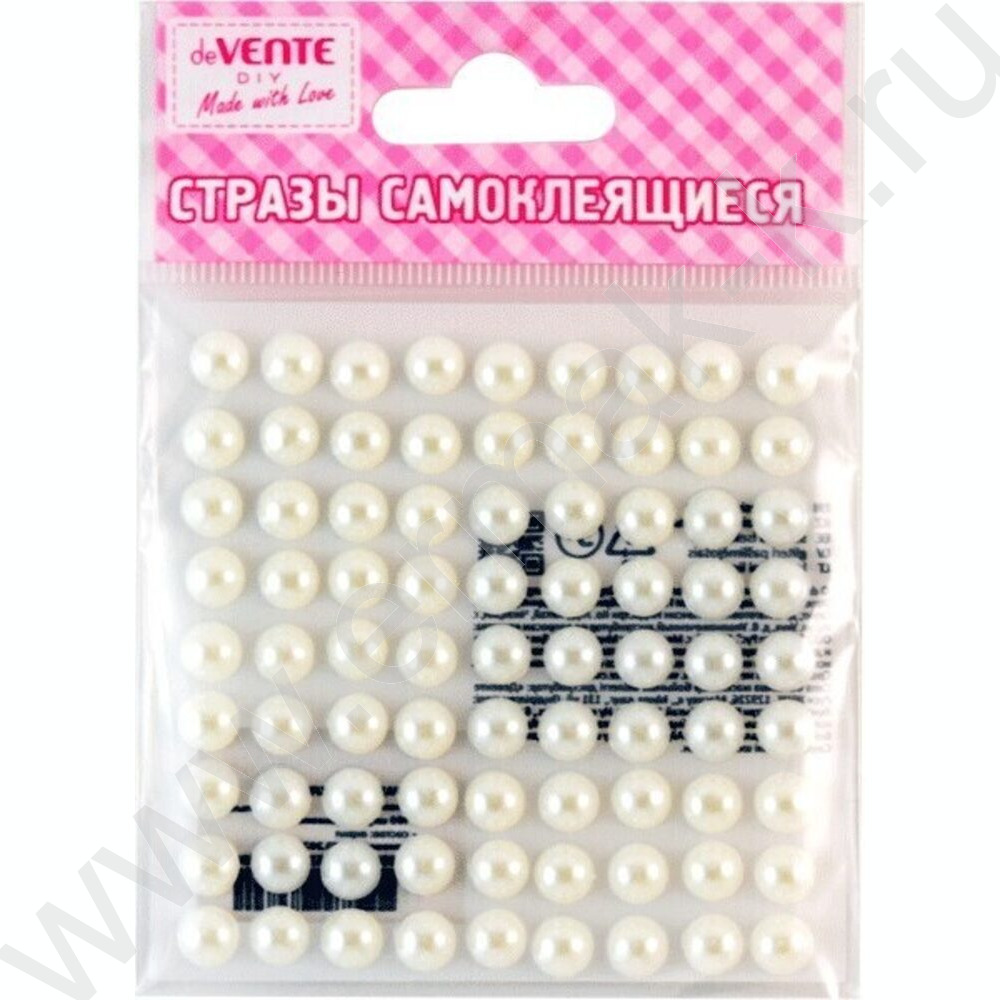 Наклейки-стразы акриловые "Жемчуг" размер 8мм, 80шт /белые /блистер