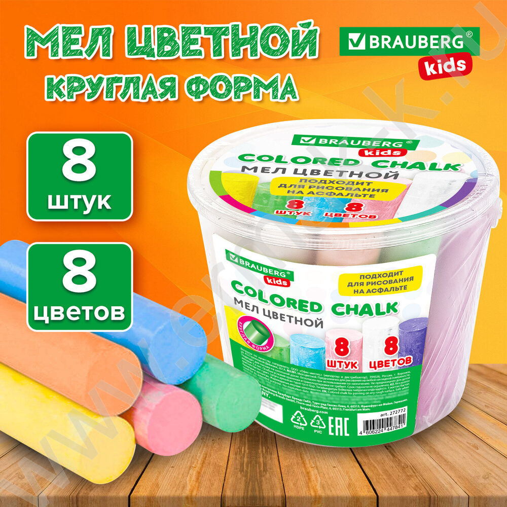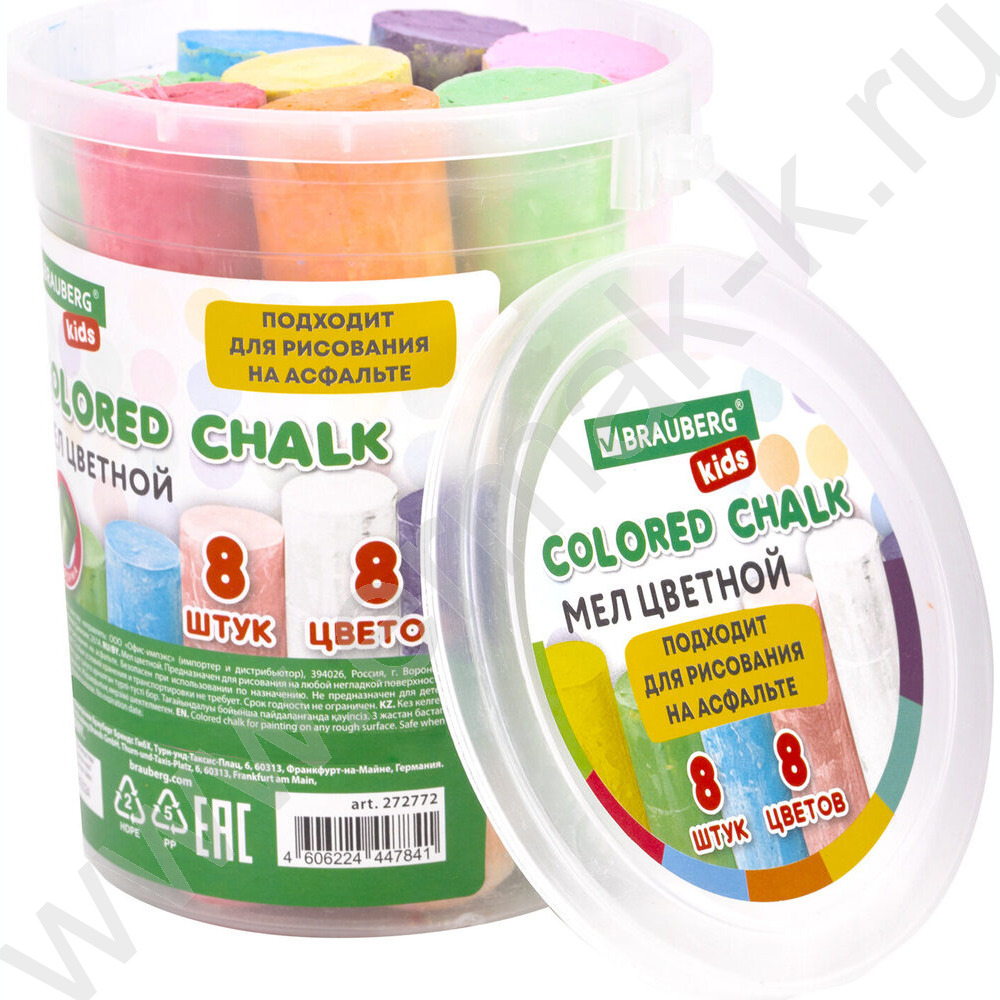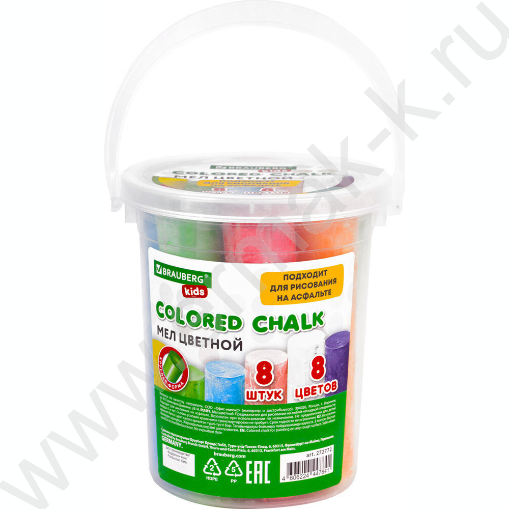 Мел цветной 8цв д/асфальта ведро, круглый NEW