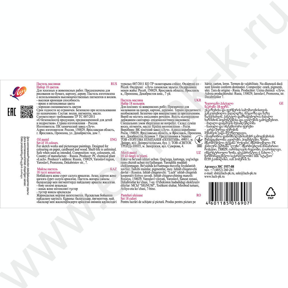 Пастель масляная 18цв "Люкс"